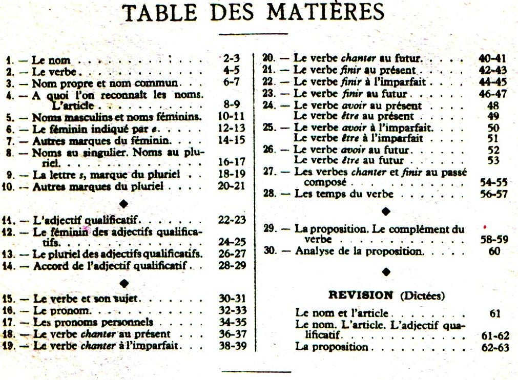 Fig. 3 : table des matières de Ma première grammaire (1959).