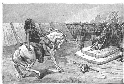 Vercingétorix ne voulut pas les laisser mourir de faim. Il aima mieux se rendre à César. Il s’en alla vers le camp des Romains, tout seul.