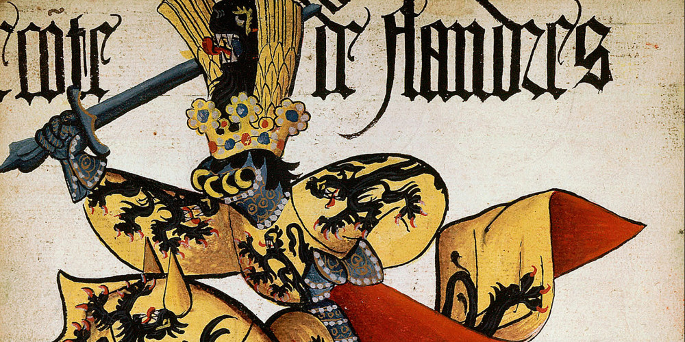 - Bannière 2 : Philippe III dit le Bon, duc de Bourgogne, portant les armoiries des comtes de Flandre, XVe siècle, bibliothèque de l’Arsenal, BnF