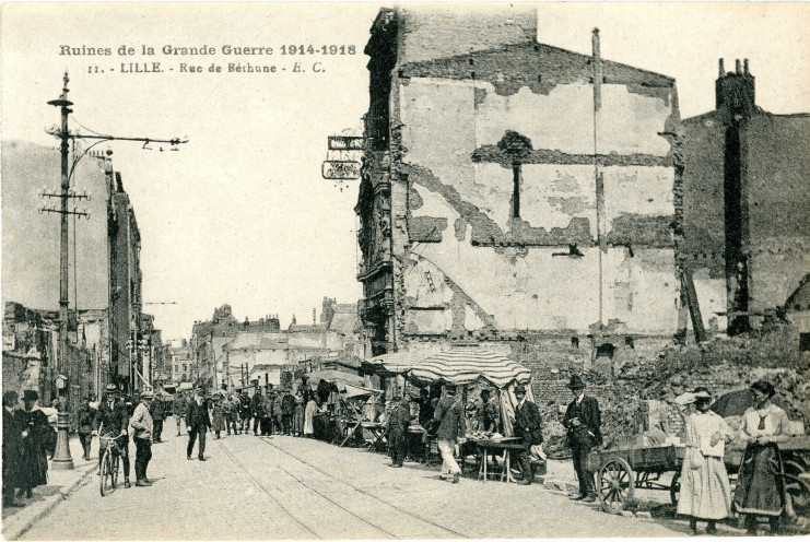 - Bannière 10 : ruines de la Grande Guerre, rue de Béthune, archives municipales de Lille – 7Fi/657