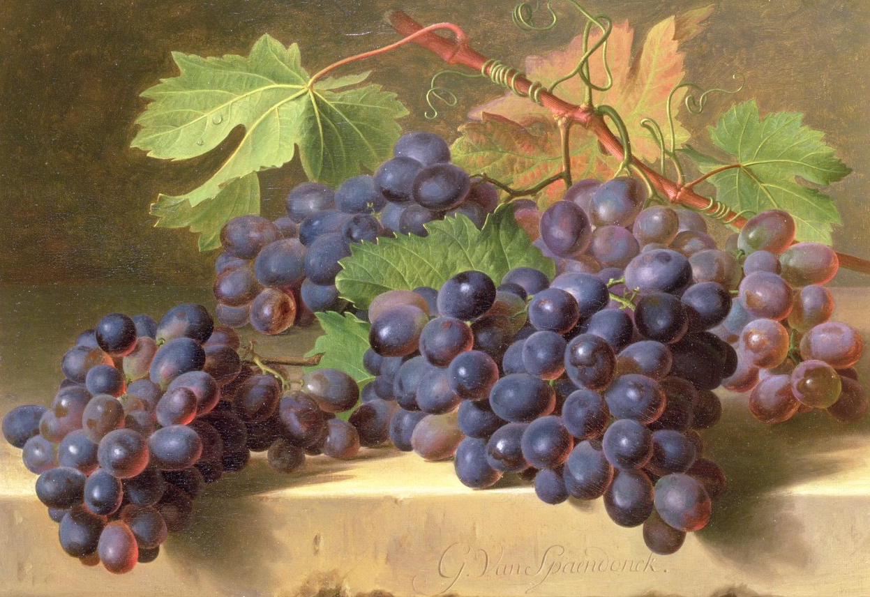 Source image : Gerard van Spaendonck, Nature morte de raisins reposant sur un rebord en marbre, non daté, Private Collection / Bridgeman Images